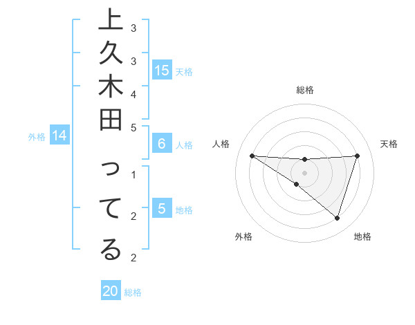 上久木田 ってるさんを姓名の画数から五運を鑑定