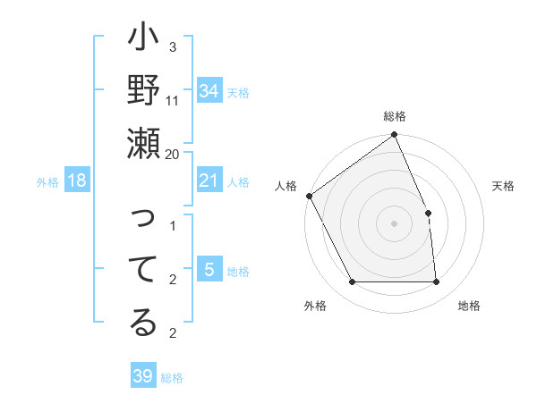 小野瀬 ってるさんを姓名の画数から五運を鑑定