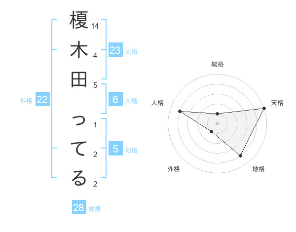 榎木田 ってるさんの天格は23画の5点!