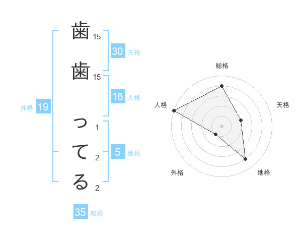 歯歯 ってるさんの総格は35画の4点!