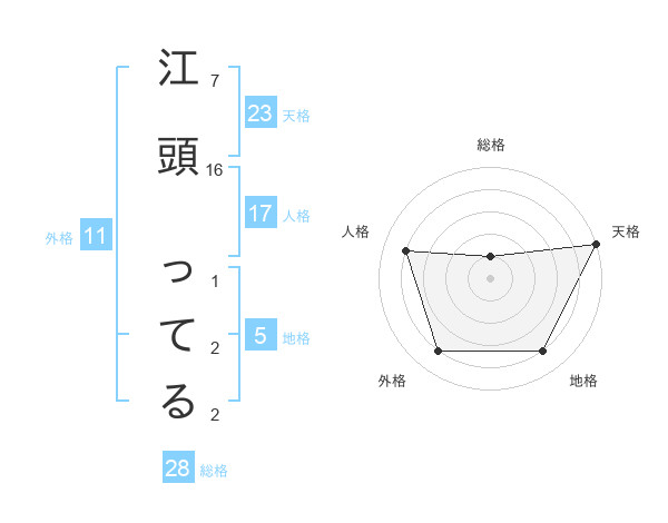 江頭 ってるさんを姓名の画数から五運を鑑定