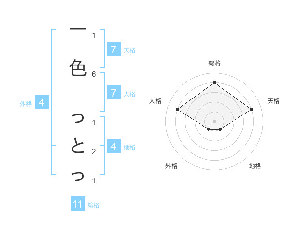 一色 っとっさんの総格は11画の4点!