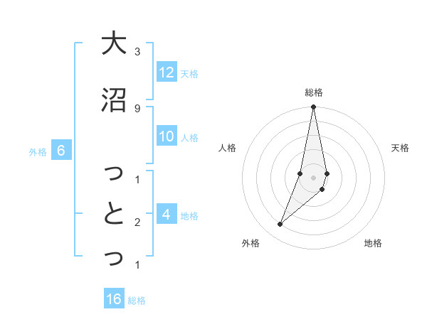 大沼 っとっさんを姓名の画数から五運を鑑定