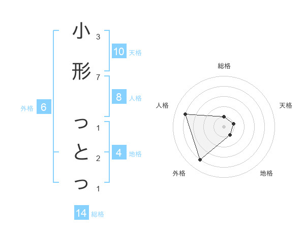小形 っとっさんの総格は14画の1点!