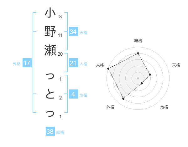 小野瀬 っとっさんを姓名の画数から五運を鑑定