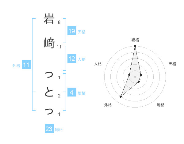 岩﨑 っとっさんを姓名の画数から五運を鑑定