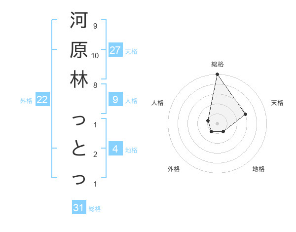 河原林 っとっさんを姓名の画数から五運を鑑定