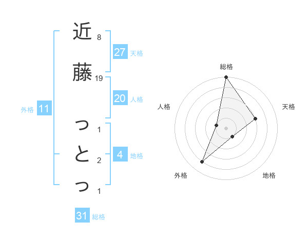 近藤 っとっさんを姓名の画数から五運を鑑定