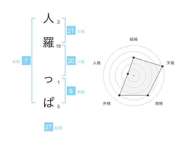 人羅 っぱさんの総格は27画の3点!