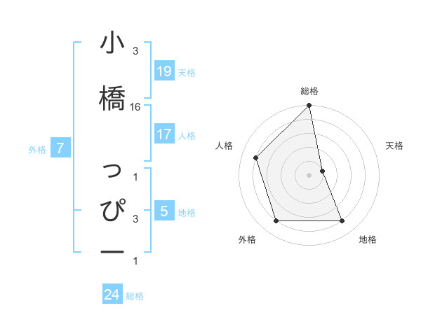 小橋 っぴーさんを姓名の画数から五運を鑑定