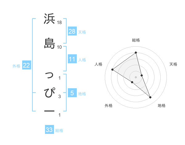 浜島 っぴーさんを姓名の画数から五運を鑑定