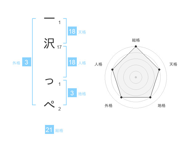 一沢 っぺさんの総格は21画の5点!