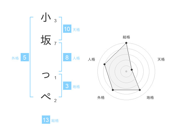小坂 っぺさんの総格は13画の5点!