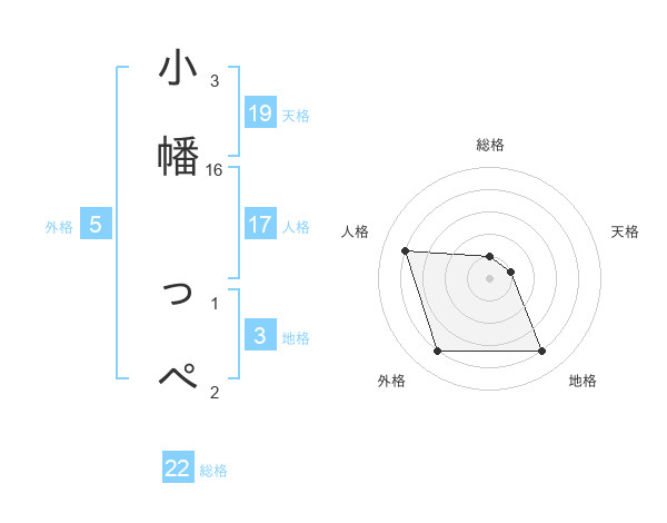 小幡 っぺさんを姓名の画数から五運を鑑定