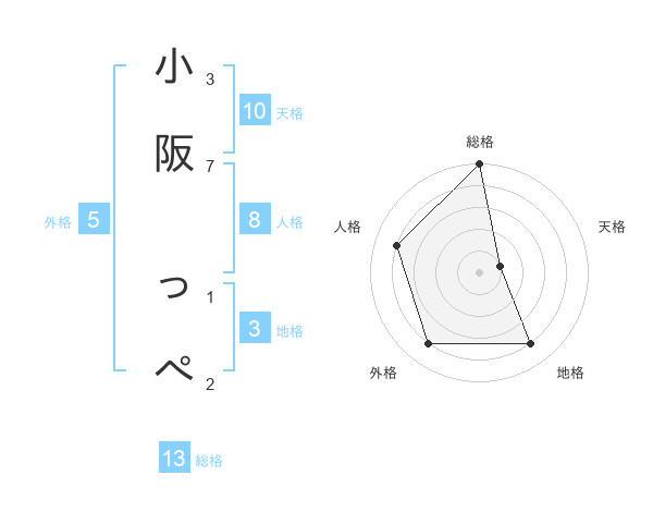 小阪 っぺさんの総格は13画の5点!