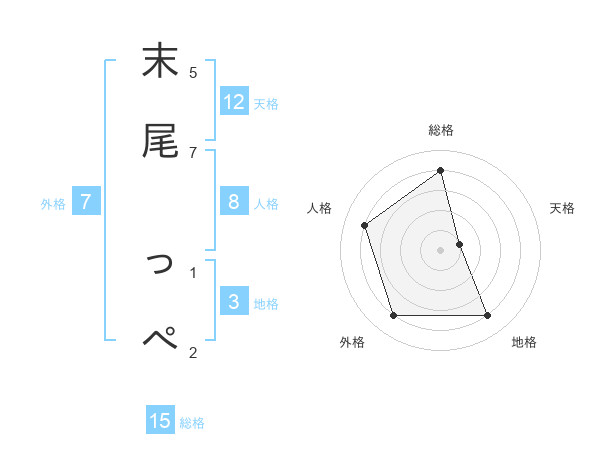 末尾 っぺさんの総格は15画の4点!