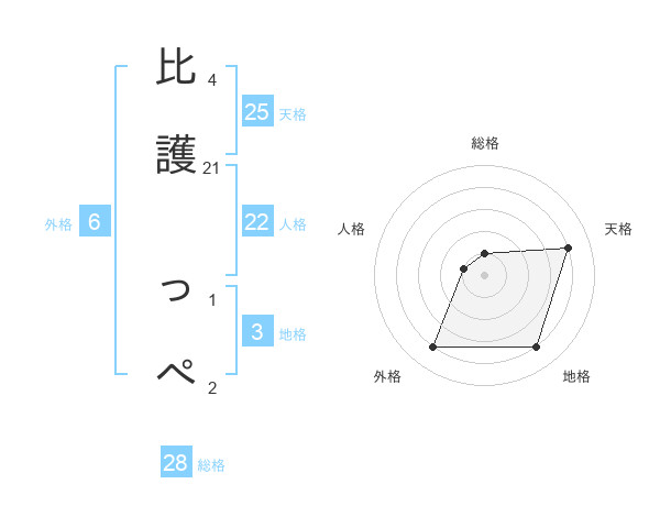 比護 っぺさんの天格は25画の4点!