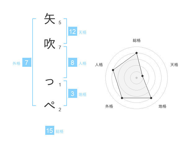 矢吹 っぺさんの総格は15画の4点!