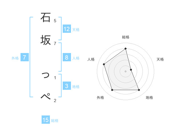 石坂 っぺさんを姓名の画数から五運を鑑定