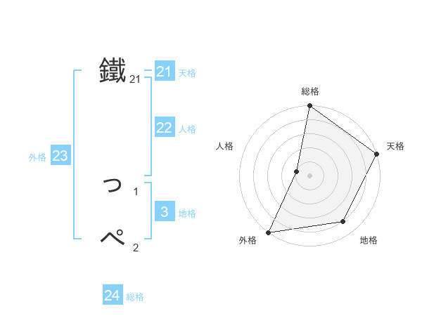 鐵 っぺさんを姓名の画数から五運を鑑定