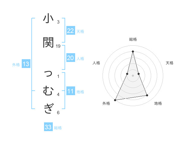 小関 っむぎさんを姓名の画数から五運を鑑定