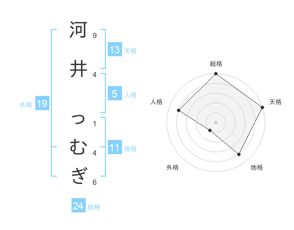 河井 っむぎさんを姓名の画数から五運を鑑定