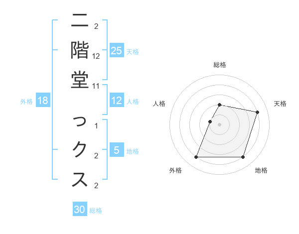 二階堂 っクスさんを姓名の画数から五運を鑑定