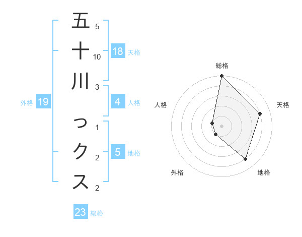 五十川 っクスさんを姓名の画数から五運を鑑定