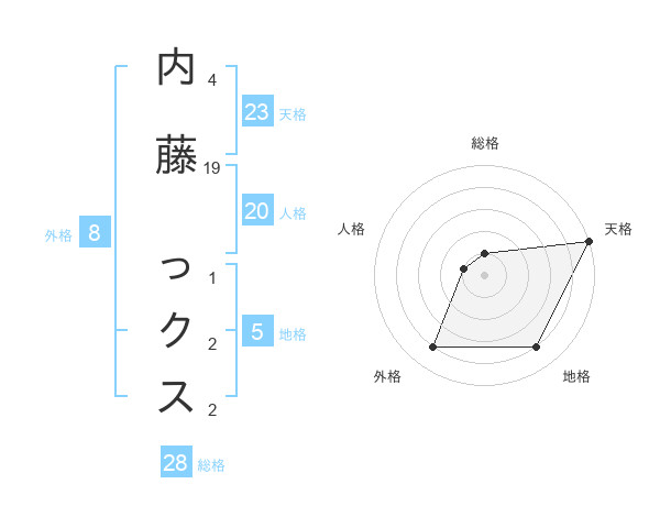 内藤 っクスさんを姓名の画数から五運を鑑定