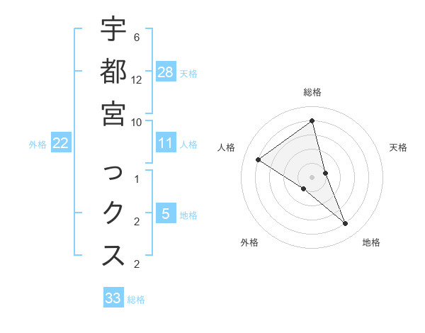 宇都宮 っクスさんの総格は33画の4点!