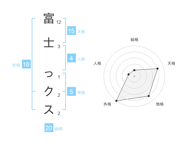 富士 っクスさんの総格は20画の1点!