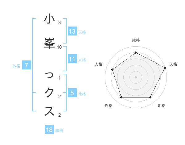 小峯 っクスさんを姓名の画数から五運を鑑定