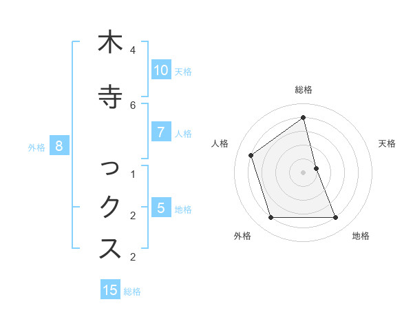 木寺 っクスさんの地格は5画の4点!