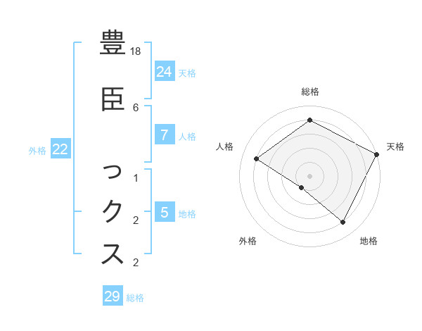 豊臣 っクスさんを姓名の画数から五運を鑑定