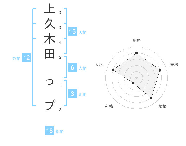 上久木田 っプさんの天格は15画の4点!