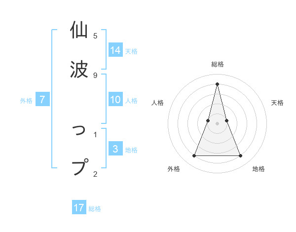 仙波 っプさんの総格は17画の4点!