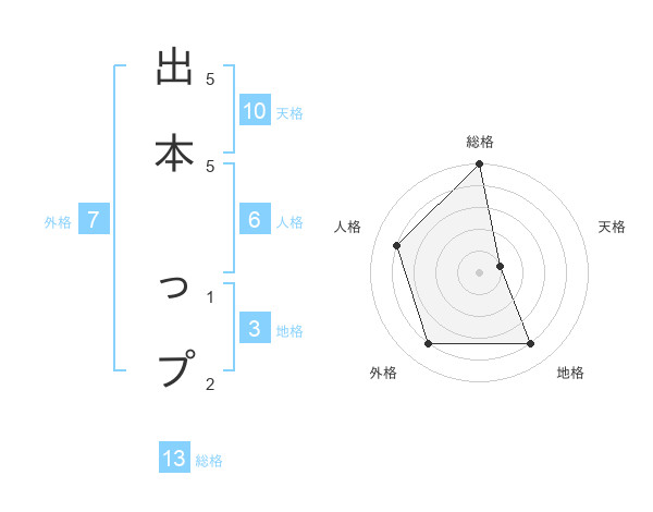 出本 っプさんの総格は13画の5点!