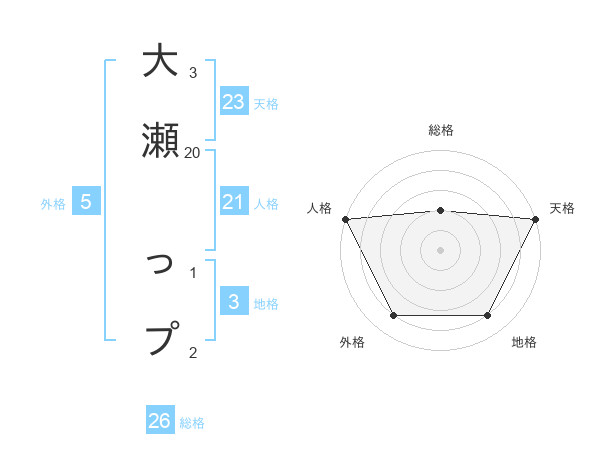 大瀬 っプさんを姓名の画数から五運を鑑定