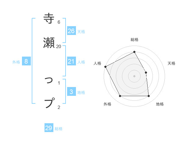 寺瀬 っプさんの総格は29画の4点!