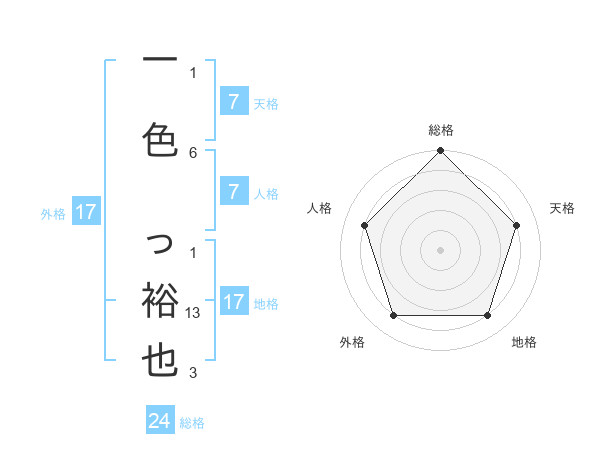 一色 っ裕也さんの地格は17画の4点!