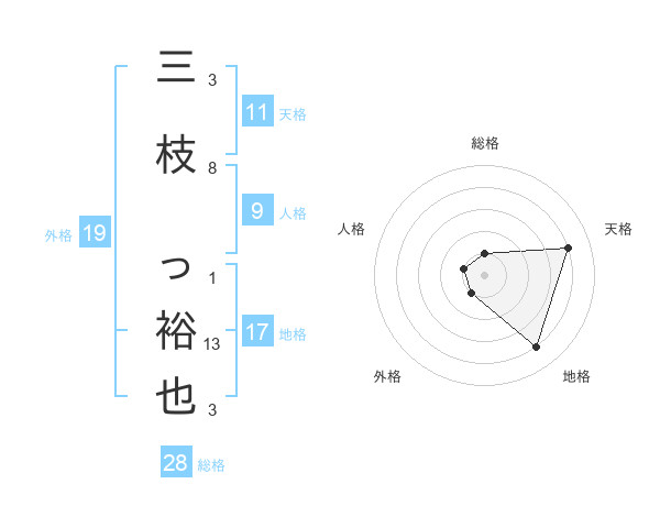 三枝 っ裕也さんを姓名の画数から五運を鑑定