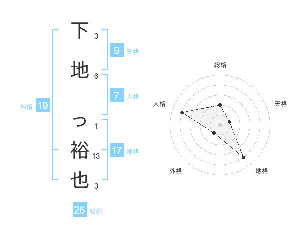 下地 っ裕也さんを姓名の画数から五運を鑑定