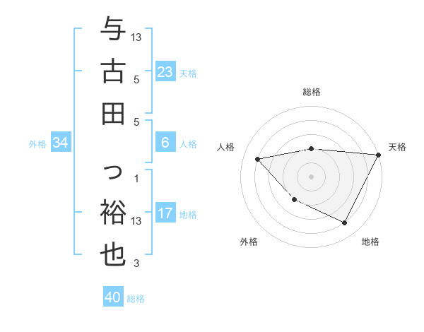 与古田 っ裕也さんを姓名の画数から五運を鑑定