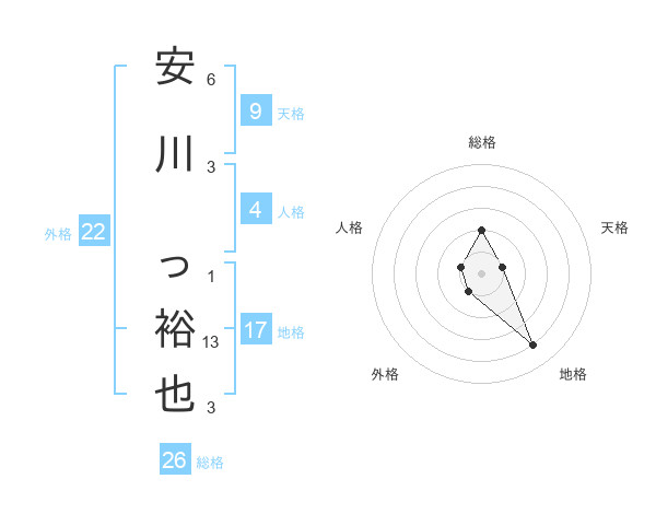 安川 っ裕也さんを姓名の画数から五運を鑑定