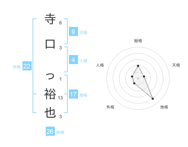 寺口 っ裕也さんの総格は26画の2点!