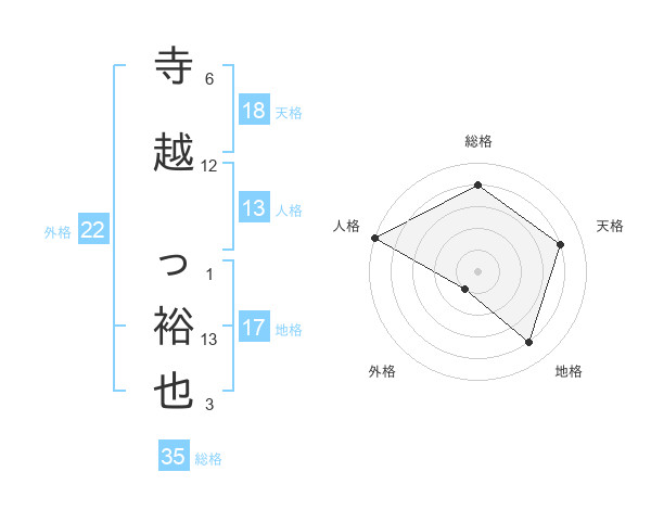 寺越 っ裕也さんを姓名の画数から五運を鑑定