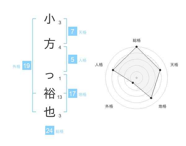 小方 っ裕也さんを姓名の画数から五運を鑑定