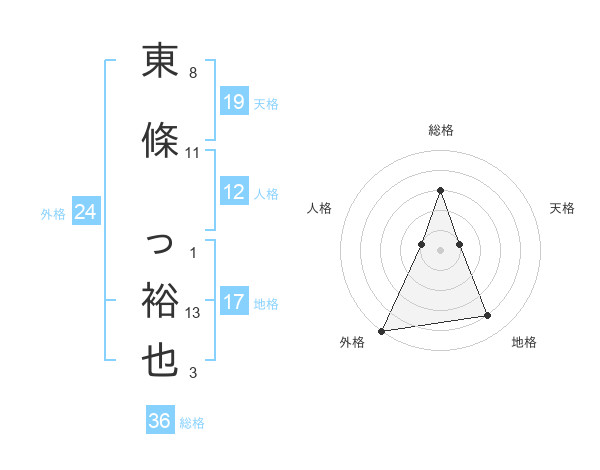 東條 っ裕也さんを姓名の画数から五運を鑑定