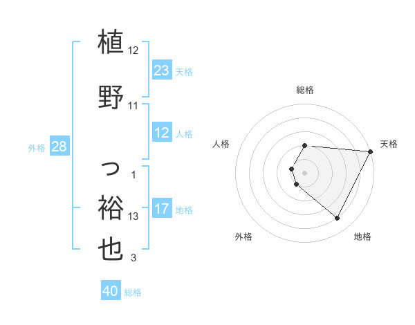 植野 っ裕也さんを姓名の画数から五運を鑑定