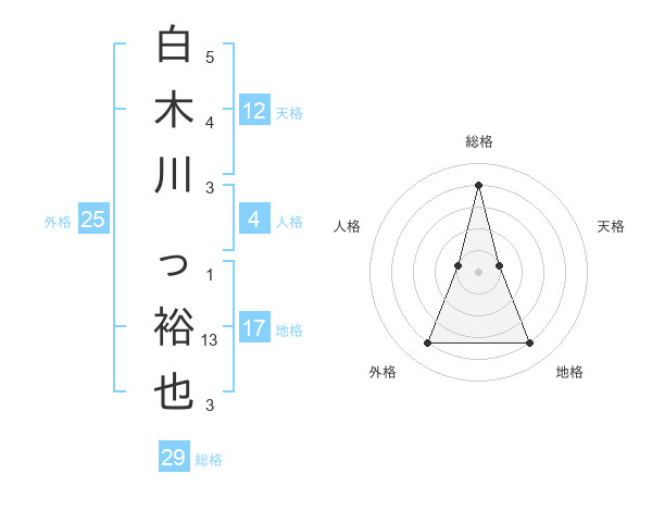 白木川 っ裕也さんを姓名の画数から五運を鑑定